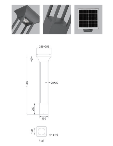 • Product Size (mm): 255X255XH1000 (Length 255mm, Width 255mm, Height 1000mm)