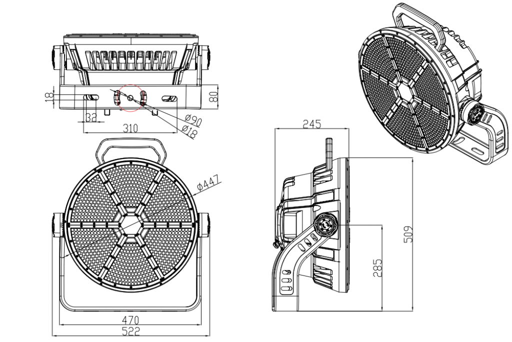Fixture Size: 522 × 509 × 389 mm
